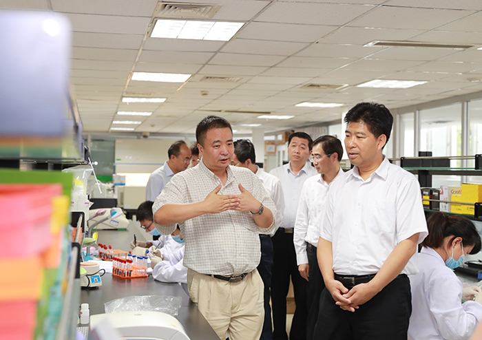 在复旦大学泰州健康科学研究院,曲福田一行走进遗传资源库、实验室、资料库,详细听取关于人群健康研究及其产业化、遗传病学研究、基于大数据的健康管理、诊断试剂研发、健康大数据和生物资源库建设等情况,对该平台关注人类健康、创新体制机制致力前沿科学研究的做法给予充分肯定。